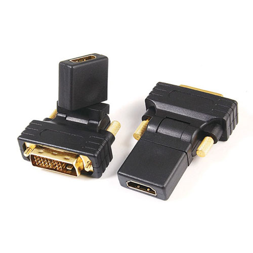 DVI (24+1) male to HDMI A female adaptor, rotating 270°, G: gold, N: nickel